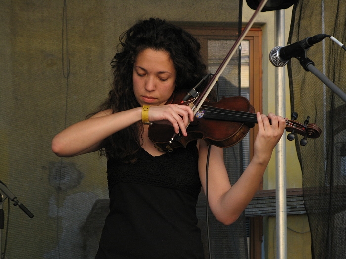 Konečně přišla na řadu další z plzeňských kapel, na kterou jsem se opravdu těšila, protože jsem si nebyla jistá, zda ji můj vytříbený hudební sluch přijme či nikoli. Jedná se o skupinu s příhodným názvem Nebylo nás pět. Není jich pět, nýbrž čtyři. Nejvíce asi zaujme houslistka a zpěvačka Simona Slavíková. Alternativní žánr s houslemi zní velmi zajímavě, v podání Nebylo nás pět tomu není jinak, nicméně občas vyzařuje trochu chaoticky. V první řadě je třeba poznamenat, že skladby se zdály být delší, než je obvyklé, a za druhé mě asi o svých kvalitách nepřesvědčil bubeník kapely, kterému tak nějak dle mého názoru scházel cit pro rytmus, což právě způsobovalo dojem jakési chaotičnosti. Přesto však kapela na mě celkový dojem udělala opravdu dobrý, chce to jen trošku zapracovat na přechodech a věřím, že už tak početná fanouškovská základna se ještě rozroste. Krom toho je třeba zmínit vynikajícího kytaristu Štěpána Dyka, který potenciál kapely o to víc zvyšuje.
