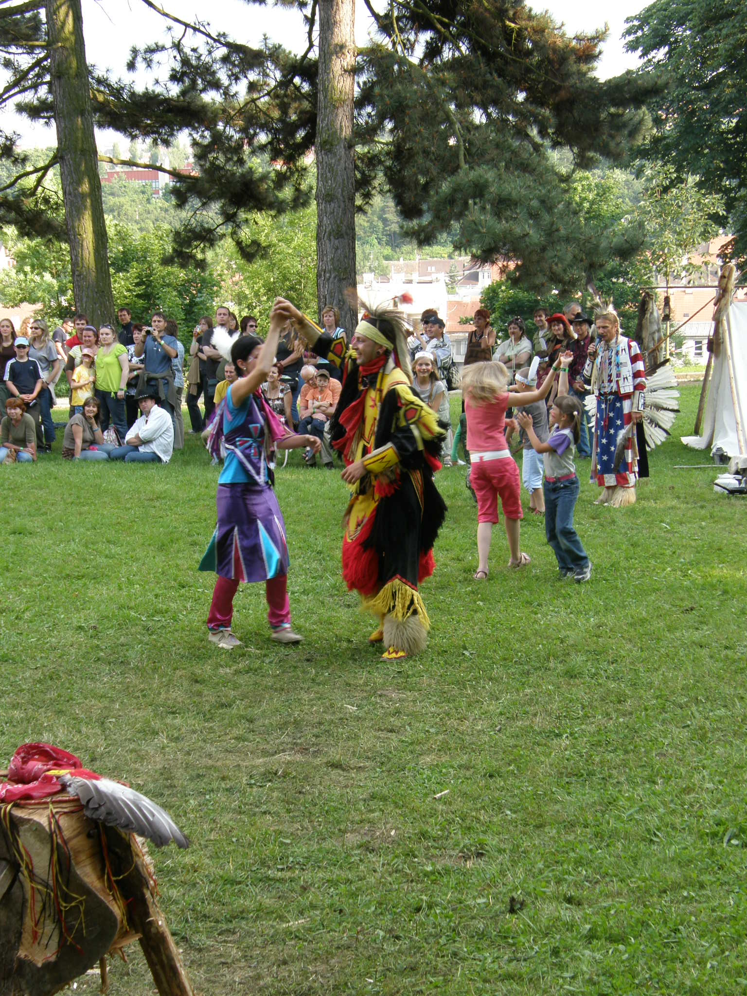 Počasí festivalu opravdu přálo (i když se na obzoru chvílemi objevovaly mraky) a tak má Třebíč od soboty o tisíc opálených tváří víc. Je téměř jisté, že oblaka rozehnal skvělý indiánský náčelník (asi Vinnetou) s mohutnou čelenkou a jeho věrný bratr Inčučuna s pohyby téměř jako ten co tančí s vlky .