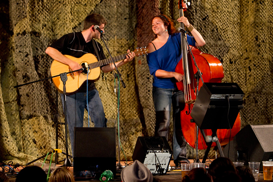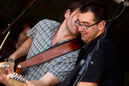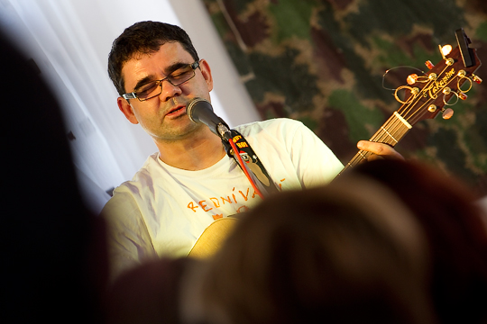 Z internetového rádia Folk (www.radiofolk.cz) znám už nějaký pátek pražskou skupinu z Vysočiny, Tamaral! Moc rád si jejich písně pouštím z jejich profilu na http://bandzone.cz/tamaral ... na Zahradě se za skupinu představil v zámeckých prostorách jen Petr Sedláček, který mimochodem uváděl spolu s Jiřím moravským Brabcem večerní dění v amfiteátru. Jelikož akcí bylo tolik, že nebylo možné zůstávat dlouho na jednom místě, ze zámku jsem spěchal na terasu, kde hrálo a zpívalo duo Janoušek - Vondrák. O tomhle duu jsem se už zmiňoval ve svém článku o 11. ročníku Vítání jara v Nížkovicích (mém bydlišti), které přímo pořádá a organizuje Slávek Janoušek.