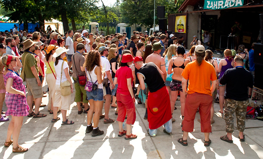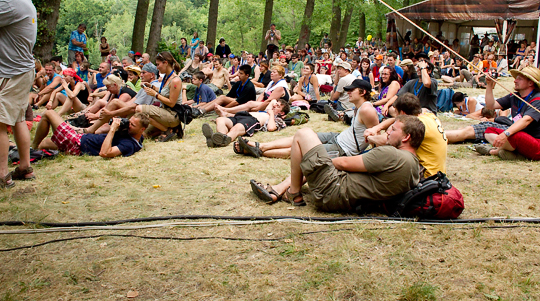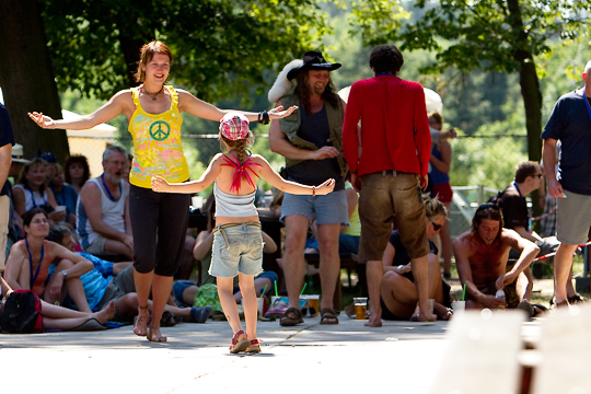 Samotný festival byl zahájený už v pátek 2. a ukončený 5. července, mým velkým dnem se však stala neděle. Hodně brzy ráno vstávám, sedám do auta a vyrážím směr Náměšť na Hané. Po mém příjezdu kolem sedmé hodiny se stanové městečko probouzelo do nového dne, všude panovalo neuvěřitelné ticho, jen místy byla slyšet hudba a zpěv vytrvalých návštěvníků, posedávajícíh na nejrůznějších místech. Se slunečními paprsky prodírající se přes koruny stromů a slibující nádherný den, obcházím všechny čtyři stagee a nasávám tu neuvěřitelnou atmosféru.