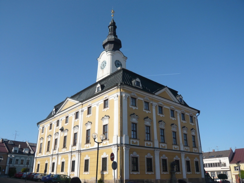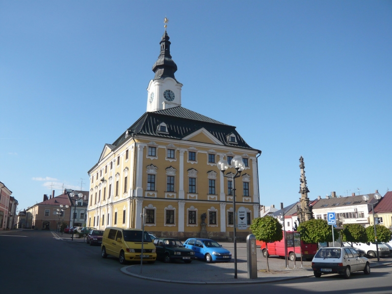 Morový sloup na náměstí, vysoký 22 metry, vytvořený v letech 1727-31 jako dík za ochránění města před morem roku 1713. Jeho architektonickou kompozici pravděpodobně navrhl přední český architekt František Maxmilián Kaňka, sochy vytesal Jiří František Pacák z Litomyšle.