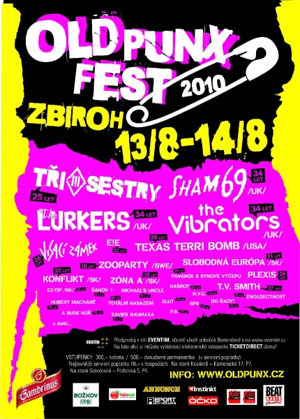 Old Punx Fest 2010 se bude konat 13.-14.8.2010 na třech podiích (Krytá scéna, Gambrinus stan a open-air stage) v nádherném areálu zámku Zbiroh, a představí se zde absolutní špičky české a slovenské punkrockové scény doplněné o exkluzivní hosty z Švédska či USA, ale především z Anglie, kde se hosté letošního festivalu před 34 lety podíleli přímo na formování tohoto nového hudebního stylu: