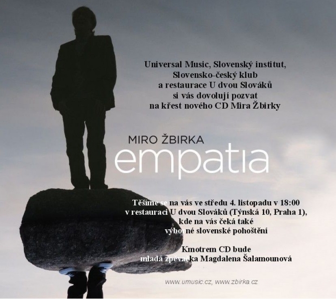 „Empatia – na tomto slově a všem co s tím souvisí, mi velmi záleží. Jakmile jsem objevil tu pravou melodii, hned mi naskočilo slovíčko empatia a už jsem se toho nápadu nedokázal vzdát. V momentě, kdy jsem napsal píseň, byl jasný i název celého alba. Myslím, že je to nesmírně náročná věc vcítit se za každých okolností do pocitů druhého člověka, ale určitě stojí za námahu se k umění empatie alespoň přiblížit...,“ vysvětluje okolnosti vzniku názvu nového alba Miro Žbirka a dodává: „Posluchači na CD najdou čtrnáct písniček, k většině z nich jsem složil hudbu a k polovině také texty. Autorem dvou písní je kamarád ze skupiny Modus Janko Lehotský. Další texty přidal můj další dlouholetý kolega Kamil Peteraj a na albu se objeví i text tragicky zesnulého slovenského básníka Joža Urbana. To je pro mě osobně trochu nostalgická záležitost, protože Jožo pro mě kdysi napsal své první texty... A pro jednu skladbu - I Need You - jsem, pro někoho možná překvapivě, sáhl do repertoáru své oblíbené skupiny The Kinks. To je taková moje srdcovka.“
