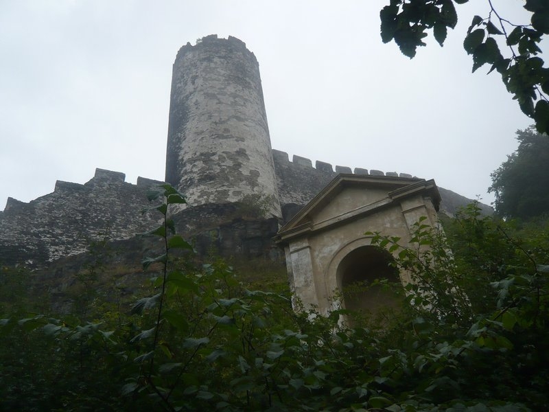 Náročnou kamenitou cestou do kopce potkáte 15 opravených kapliček křížové cesty ze 17. století, které vedou postupně na kopec k hradu. Hodně těžce se k hradu dostanete například s malými dětmi, nebo třeba s kočárkem, ten doporučuji nechat dole pod hradem. A určitě sebou neberte žádné těžké předměty, budete rádi, že to vyjdete sami. Na kole nedoporučuji vůbec. Opravdu náročný terén, který ale stojí za to překonat a na hrad se jít podívat. Před samotným vstupem do hradu se nachází nepřístupná 30 metrů vysoká Čertova věž a pamětní deska věnovaná K.H. Máchovi, který k Bezdězu neodmyslitelně patří.