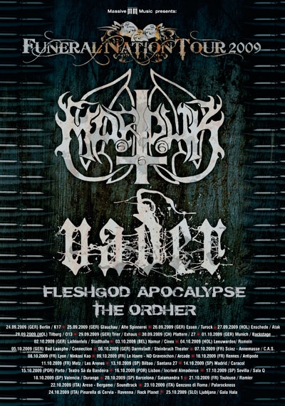Brány pekla se otevírají a vpouštějí na Zemi své temné vyslance. V čele průvodu kráčí černě oděná severská legie MARDUK, následovaná krvežíznivými polskými veterány VADER, které v týle jistí rakouská formace MASTIC SCUM a novozélandská jednotka SINATE. Proslýchá se, že dalším cílem této kruté skupiny mají býti dva kluby. Brněnský Favál a Nová Pekáreň v Nitře. Krutá mašinérie nemá slitování před ničím a před nikým. Poznáte je jednoduše, na svých zástavách mají krví napsána tato slova: „Funeral Nation Tour“.