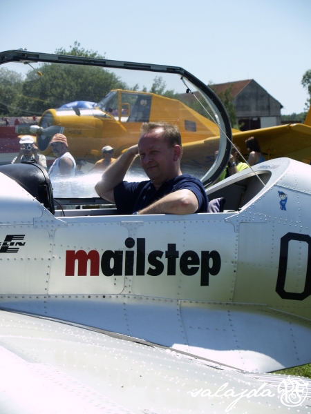 Na plochu už roloval p.Petr Biskup se svým stříbrným strojem a okamžitě po startu zaujal všechny návštěvníky , ihned začala perfektní akrobatická sestava která nenechala nikoho na pochybách že v letadle sedí Pan pilot veškeré prvky byly zalétány absolutně bez chyb. Diváci ani nedýchali napětím aby nepromeškali žádný kousek, který jim předváděl p.Biskup nízko nad plochou skoro nadosah ruky.