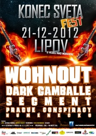 „Konec světa v letošním roce rozhodně bude“, hlásí organizátoři festivalu, který pojmenovali svůj festival stejně. Hudební „Konec světa fest“ se uskuteční 21.12.2012 v Lipově.