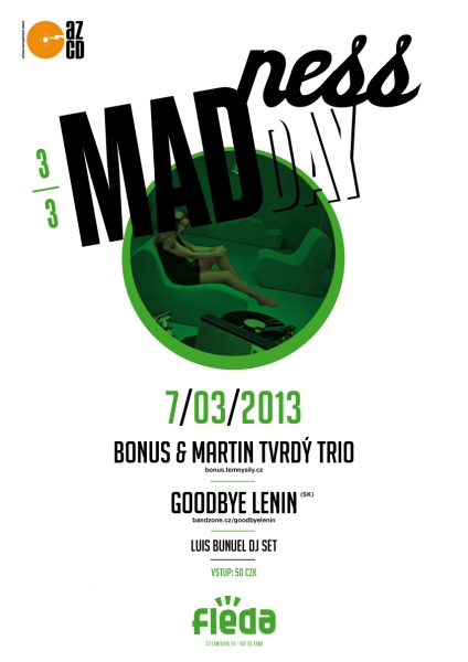 Seriál Madness day sice představuje především talentované mladé kapely, ale hvězda jako je raper Bonus se neodmítá. Bonus ostatně stál u zrodu mnoha kapel - Ememvoodoopöká nebo Sporto. V jeho společnosti vystoupí slovenská kapela GoodBye Lenin!. Seriál přináší Level B production ve spolupráci s azcd.cz. O afterparty se postará Luis Bunuel DJ set.