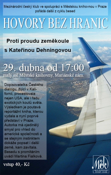 Dopisovatelka Českého dialogu, žijící v Kalifornii v USA, procestovala nejen svoji novou domovinu, ale ještě i mnoho dalších exotických koutů světa. Výsledkem je poutavá reportážní kniha, kterou vydala v ČR a nyní osobně představí v Praze. Autorka má ojedinělý smysl pro vhled do americké společnosti, a se stejným instinktem dokáže zajímavým i zábavným způsobem popsat i další země, kam zavítala. Beseda s promítáním a autogramiádou.
