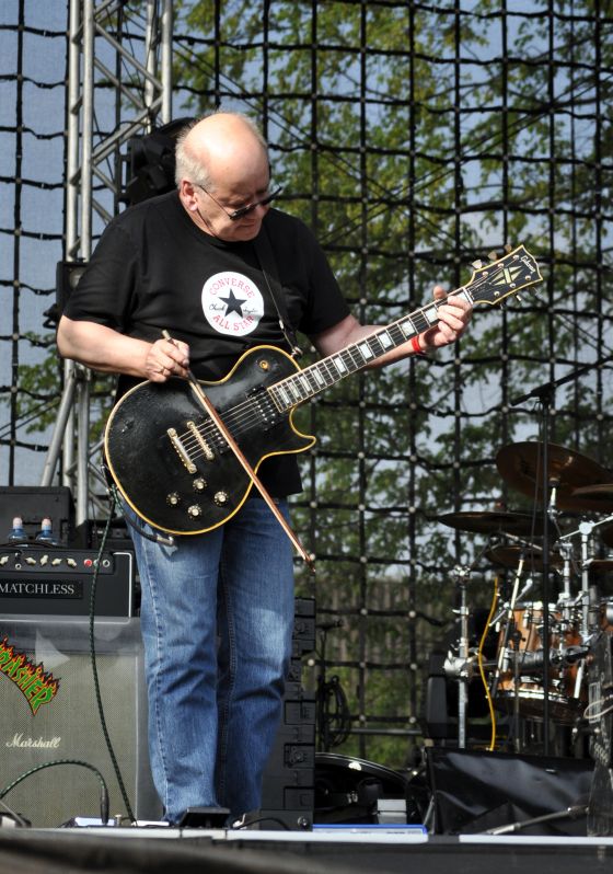 Od pěti hodin zahájilo provoz i hlavní pódium, konkrétně skupina Blue Effect. Kapela vzniknuvší již v roce 1968 tak vedle Pražského výběru (vznik 1976) a Wanastowek (1988) hezky zapadla. Z původní sestavy Blue effectu zbyl už jen kytarista Radim Hladík, který jen potvrdil své zařazení mezi nejlepší české kytaristy. To samé tvrzení platí i o Michalu Pavlíčkovi, kytaristovi Pražského výběru, který se na pódiu představil poté. Od roku 2006 rozhádaná kapela se v minulém roce dala dohromady v původní sestavě – Kocáb, Pavlíček, Čok, Hrubeš, Kryšpín, Tomek. Po rozpadu založil Michal Kocáb Pražský Výběr II., který jsem slyšela na jednom festivalu, a moc mě nezaujal. Proto jsem byla na obnovenou skupinu zvědavá a musím říct, že tak dobrý koncert jsem nečekala. Koncert odstartovalo intro následované písní Hrabě X. V tu dobu již početné publikum reagovalo nejvíc na hit Pražákům, těm je tu hej či Zubatá. První polovinu koncertu odehrál na bicí Jiří Hrubeš, na tu druhou ho vystřídal Klauda Kryšpín.