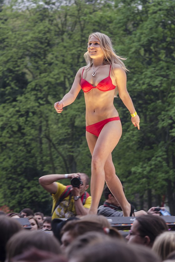 Hlavní nápor přicházejících davů nastal před 18.hodinou, kdy na vystoupení MIG 21 stálo před pódiem pěkných pár tisíc nadšených nejen mladých lidí. Celkově bylo Mayzus Stage, jak se dle partnera jmenovalo hlavní podium, nejnašlapanějším místem akce. Nejen kvůli tomu, že Mig 21 vystřídal Tomáš Klus a následně Kryštof, ale také proto, že právě toto pódium bylo hlavním místem doprovodných akcí souvisejících jako volby krále a královny Majálesu . Ale i vedlejší stage dokázaly nabídnout zajímavý program – Wohnouti a Vypsaná Fixa na Gambrinus Excelent Stage, festivalová klasika Chinaski tamtéž, a nebo slovenští Polemic, Sto zvířat a Iné Kafe na AVG stage.