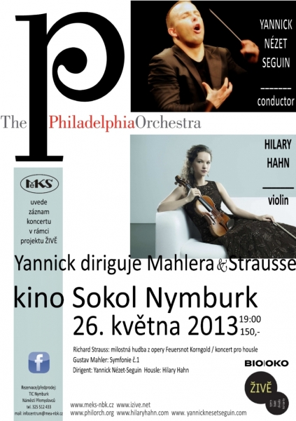 Druhý počin z projektu ŽIVĚ, do něhož se zapojuje nymburské kino Sokol, přináší jednoho z předních světových dirigentů mladé generace Yannicka Nezet-Seguina (nar. 1975), který diriguje The Philadelphia Orchestra - hudbu Gustava Mahlera a Richarda Strausse.