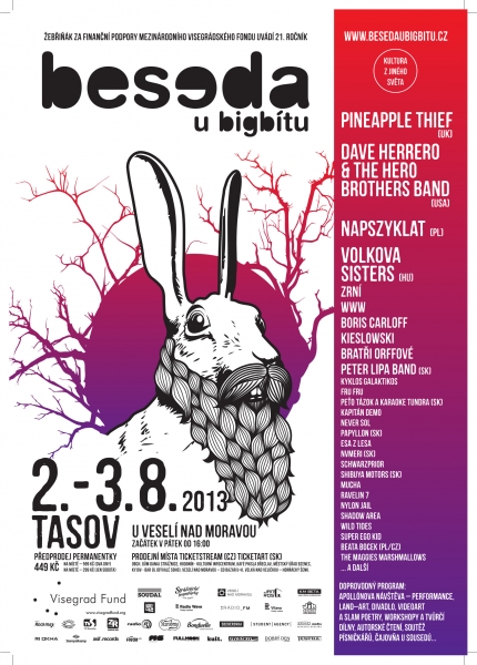 Beseda u Bigbítu vstupuje v letošním roce do své třetí dekády a nezůstane nic dlužná své pověsti. V české koncertní premiéře představí několik atraktivních zahraničních hostů a samozřejmostí je reprezentativní výběr z domácí nezávislé scény. Mezi lákadla 21. ročníku festivalu, který se 2. a 3. srpna uskuteční opět v Tasově u Veselí nad Moravou, patří britské kapely The Pineapple Thief a Brontide, Volkova Sisters z Maďarska, Dave Herrero & The Hero Brother Band z USA a polští Napszyklat. Českou hudební scénu v programu zastoupí WWW, Zrní, Bratři Orffové, Boris Carloff nebo Kyklos Galaktikos.