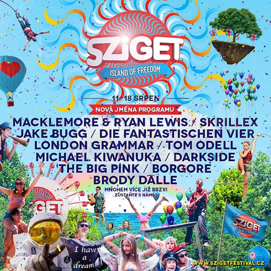 Organizátoři Szigetu oznámili další jména hvězd, které již potvrdily svoji účast na letošním ročníku festivalu. Macklemore & Ryan Lewis, Skrillex, Jake Bugg a London Grammar vystoupí na Szigetu 'Island of Freedom – Ostrovu svobody', který se koná 11.-18. srpna v srdci Budapešti.