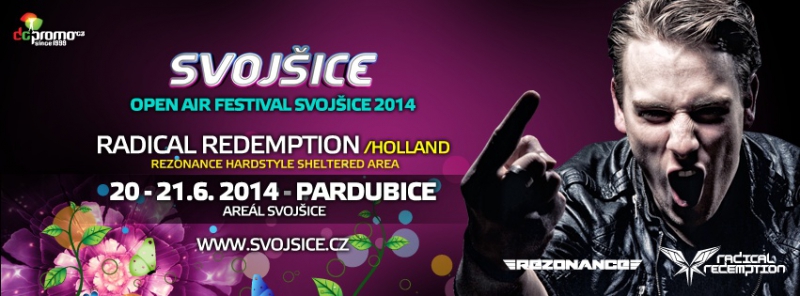 Na festival Svojšice tento rok zavítá hardstylová Rezonance stage a hardcorová Prague Nightmare stage! Headlinerem páteční hardstylové noci se stává brutální raw hardstylový Radical Redemption z Holandska, který pravidelně vystupuje na největších hardstyle festivalech světa jako je Defqon.1, oporou mu bude ten nejlepší český a slovenský dj support.