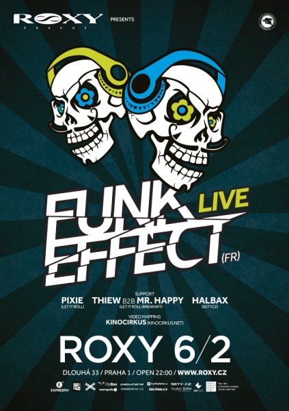 Čerstvá francouzská drum&bassová krev Funk Effect přiváží poprvé svou live show už tento pátek do ROXY. Nominace na Newcomer Of 2014 od DnBArena a ocenění Discovery Project na EDC Las Vegas naznačují, že tento pátek uvidíme něco výjimečného. Live show doplní Pixie, Halbax, Mr.Happy vs.Thiew a 3D video-mapping od skupiny Kinocirkus.