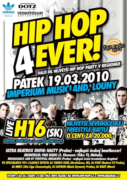Další velká regionální akce HIP HOP 4EVER! s H16 již příští pátek 19. března 2010 v Lounech. Kontroluj komplet info!