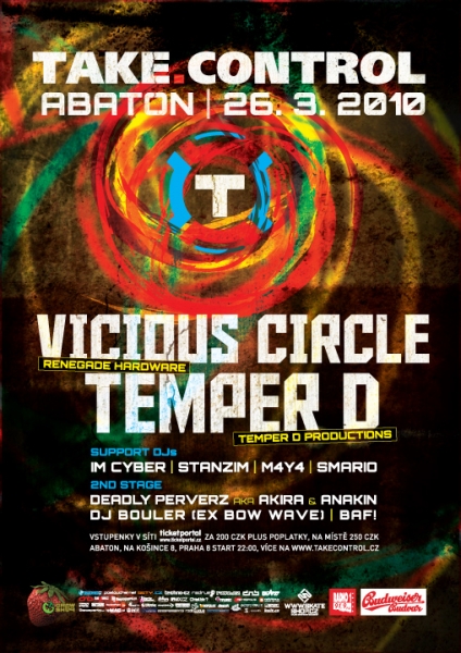 Take Control se úspěšně přehoupla přes své dvacetiny a připravuje pro drum & bassové nadšence další tancovačku. 26. března do pražského Abatonu dorazí Simon z projektu Vicious Circle a šikovný krotitel vícero gramofonů, Temper D.