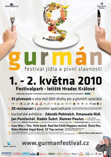 Během prvního květnového víkendu se v Hradci Králové představí zbrusu nový festival dobrého jídla a kvalitního piva Gurmán. Na programu jsou kuchařské show, promítání filmů, farmářské tržiště a koncerty kapel jako Yo Yo Band, Děda Mládek Illegal Band či Žlutý Pes.