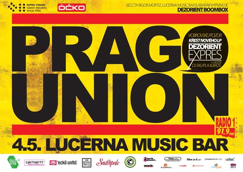 Tohle vsechno jste možná věděli, nebo aspoň tušili. Neuvěřitelné ale je, že v čase, kdy na tuhle kultovní partu už nejeden posluchač lehounce pozapomněl, zaplaven tunou kapel "co promakávaj, jak udělat skandál, ale přitom dělaj jenom randál", se Prago Union vrací na scénu. Bez tisícovky tiskovek, čtyř marných mixtapeů, dvou hrozných klipů a pěti fotoshootů ve vypůjčeném oblečení z výprodeje značkového obchodu. Přináší bez přípravy to hlavní, o co by tu mělo jít - novou muziku. Po nekonečných pěti letech, co uběhli od vydání jejich debutu "HDP (Hrubej domácí produkt)" je konečně hotové nové album "Dezorient Express" a skouška ohněm posluchačů ho čeká již dnes večer.