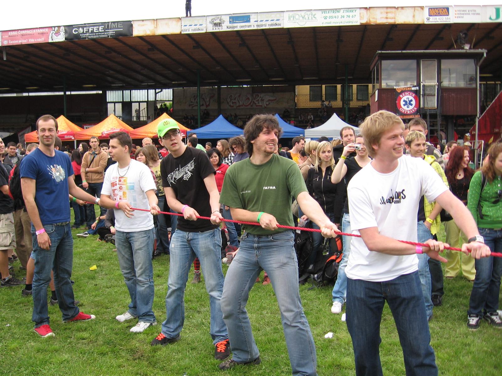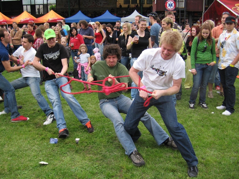 Někteří se zapojili i do soutěže v přetahování lanem. Uvažoval jsem o tom také, ale naštěstí jsem odolal pokušení. Jakmile se ozvalo start, ozvalo se taky "PRÁSK", lano prasklo a na každé straně popadalo na valnou hromadu dvacet siláků, jak brambory do sklepa.