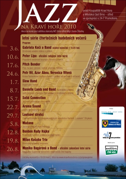 Koncertem Petra Bendeho bude ve čtvrtek 10. června v 19.00 hod. zahájena série Jazz na Kraví hoře 2010. Poté bude znít hudba v areálu koupaliště každý čtvrtek až do konce prázdnin.