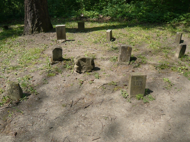 Celkem se zde nachází 16 pomníčků, z nichž dvanáct nese čitelné jméno a letopočet. Čtyři další pomníčky jsou dnes již nečitelné. Většina pomníčků s čitelnými nápisy nese německá jména, jeden z nich, z roku 1921, pak nese české psí jméno - Žolička. Mezi další jména, která se na pomníčcích nacházejí, patří Issi, Zuppi, Flott nebo Mopsi.