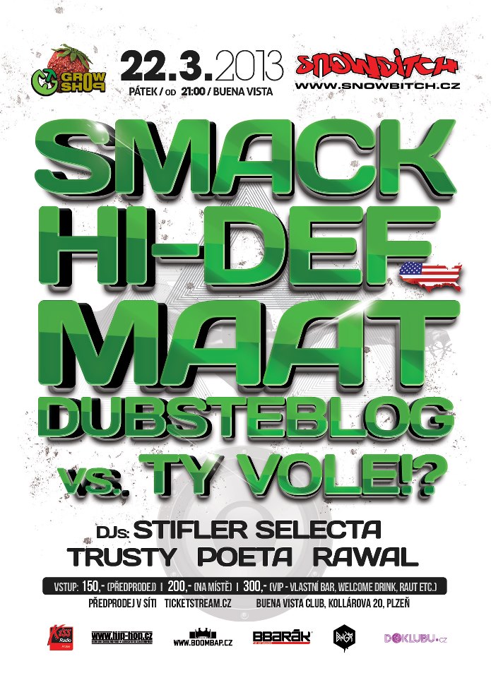 Účinkující: ♫ SMACK (A51, HYPNO 808) + FUCKSTROY & YOUNG RIP & DJ CHIK live ♫ HI-DEF (USA) FEAT. DJ RAWAL (BLACKOUT!, RADIO SPIN) live ♫ MAAT live ♫ DUBSTEBLOG VS TY VOLE!? ♫ DJ TRUSTY ♫ STIFLER SELECTA ♫ DJ POETA
