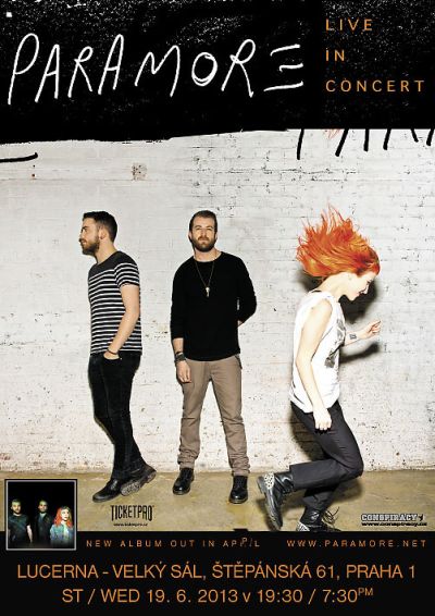 Jedna z nejpopulárnějších rockových skupin současné dekády vystoupí v červnu v Praze - PARAMORE z amerického Nashvillu v čele s nepřehlédnutelnou, charismatickou zpěvačku Hayley Williams, přijedou do České Republiky představit své nové album, které vyjde již v první polovině dubna.