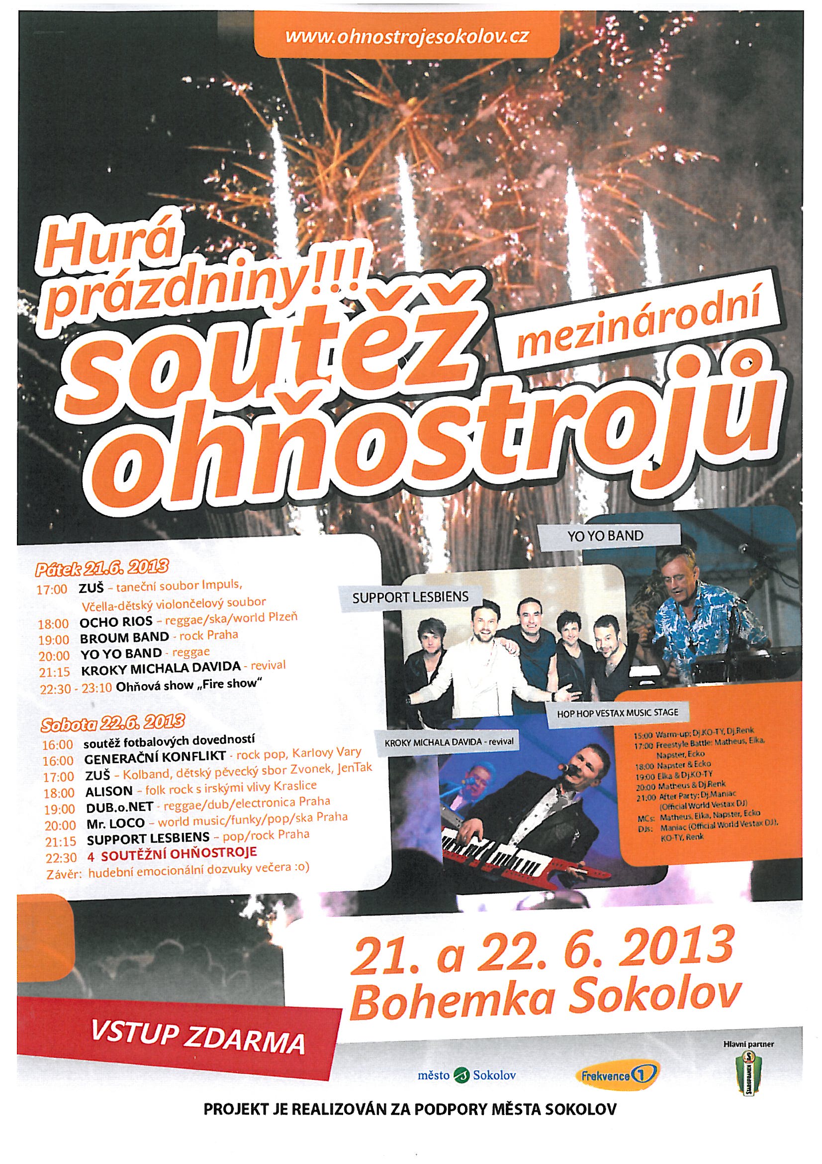 Mezinárodní soutěž ohňostrojů a bohatý kulturní program. Projekt je realizován na podpory města Sokolov.