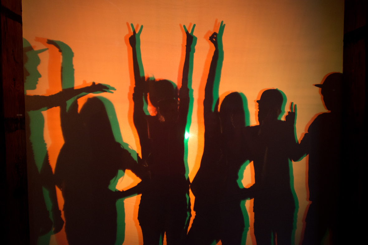 Výstava je rozprostřena ve třech patrech Sladovny, kde každé patro je tematicky uzpůsobeno: tmavý sál se světelnými projekcemi, akustický sál s hudebními objekty a tvůrčí prostor určený pro papírové leporelohrátky.