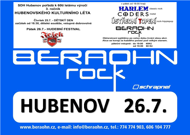 od 18:00 zahrají kapely HARLEM, ÚSTŘEDNÍ TOPENÍ A BERAOHN