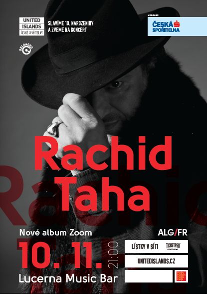 Miláček tuzemských hudebních nadšenců Rachid Taha se vrací do Prahy a v klubovém prostředí představí své nové album Zoom. Charismatický propagátor alžírského stylu rai, který v sobě nezapře duši rockové hvězdy a politického rebela, vystoupí 10. listopadu v pražském Lucerna Music Baru.