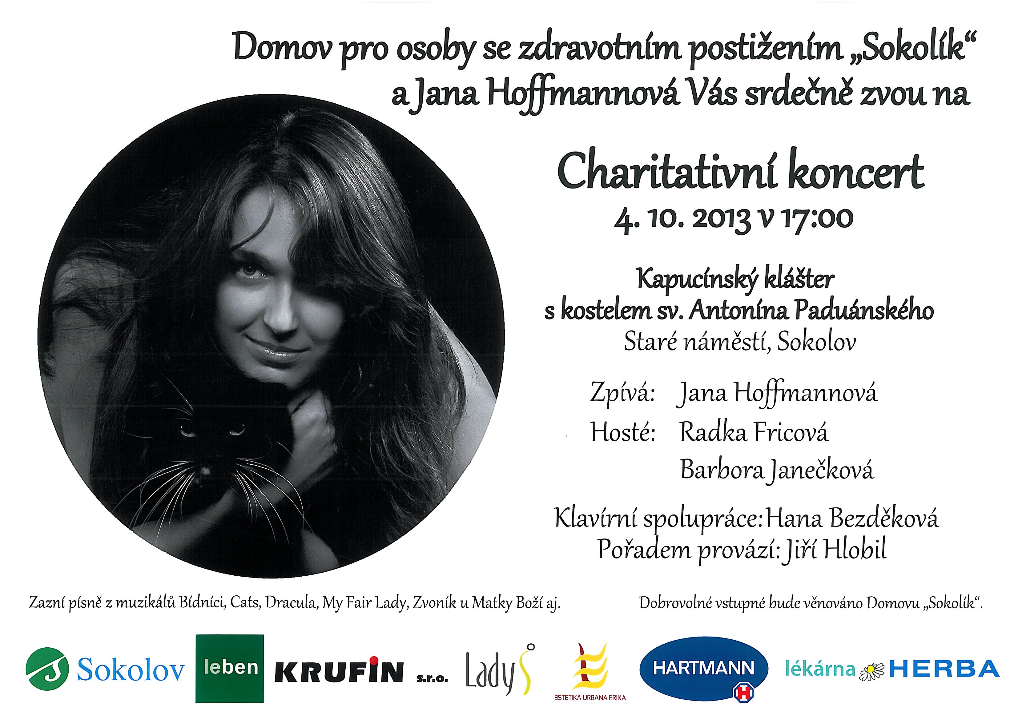 Domov pro osoby se zdravotním postižením "Sokolík" a Jana Hoffmannová Vás srdečně zvou na charitativní koncert.
