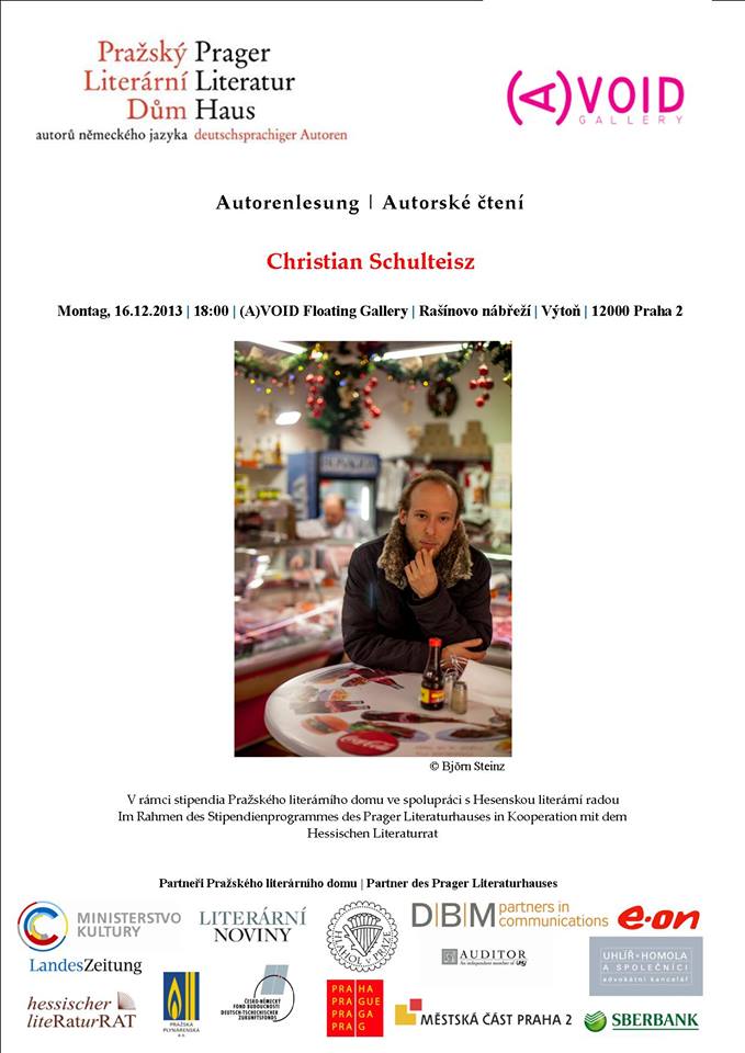 Pražský literární dům Vás srdečně zve na autorské čtení svého stipendisty Christiana Schulteisze, které je pořádáno ve spolupráci v (A)VOID Floating Gallery.