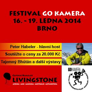 Cestovní kancelář LIVINGSTONE si dovoluje pozvat festival cestovatelských filmů, publikaci a fotografií GO KAMERA. GO Kamera každoročně přitahuje milovníky cestování, fotografy, filmaře, vodáky, horolezce, potápěče i dobrodruhy, i letos tomu nebude jinak. Festival není doménou pouze „cestovatelů". Svými filmy, fotografiemi a zážitky z cest se představují i polárníci, novináři, režiséři, spisovatelé, hudebníci a další osobnosti společenského života. I tento rok jsme připravili více než dvě desítky atraktivních besed a promítání. Festival je doprovodným programem veletrhů cestovního ruchu GO a REGIONTOUR.