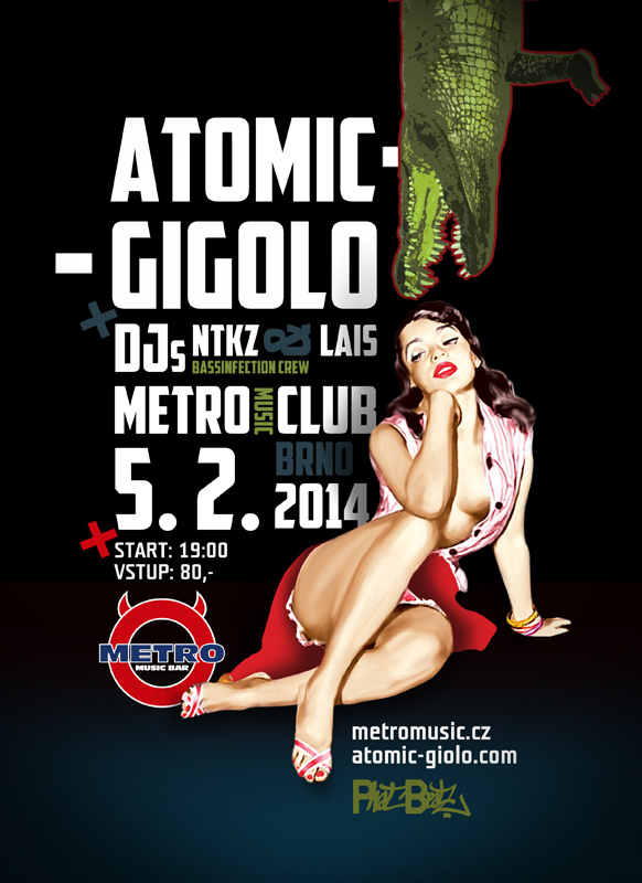 Účinkující: Atomic Gigolo + DJ Ntkz (Bassinfection crew) + DJ Lais Datum: 05. 02. 2014 Místo: Brno Klub: Metro music club, Poštovská 6, Brno Cena na místě: 80,- Začátek: 19:00