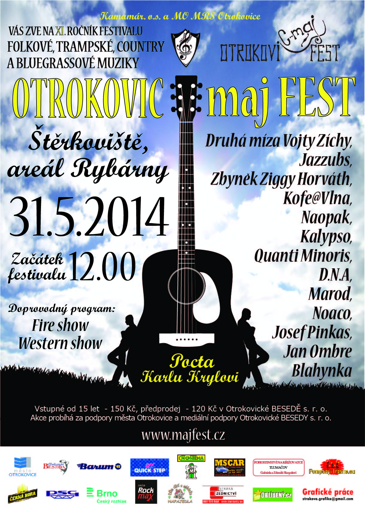 Vstupné: Cena vstupenky 150,- kč, v předprodeji 120,- kč : Předprodej od 5.5.2014 v předprodeji Otrokovické B