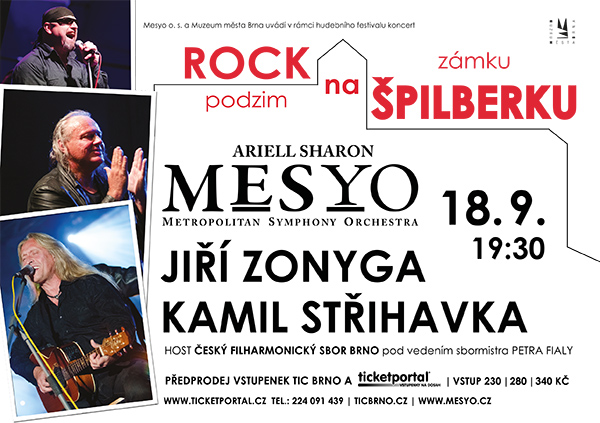 Přijďte si poslechnout vrchol podzimní hudební sezóny v projektu PODZIM NA ŠPILBERKU, v hudební koláži špičkových děl klasických skladatelů W.A. Mozarta, G.F.Haendela, Ludviga van Beethovena v rockově-symfonických úpravách, vedle písní legendárních světových kapel Led Zeppelin, Queen, Bon Jovi, Van Halen, Pink Floyd, Deep Purple, Sweet, BSP, No Guitars! v neotřelých aranžích symfonického zvuku a propojených áriemi z muzikálů A.L.Webbera a T. Rice.