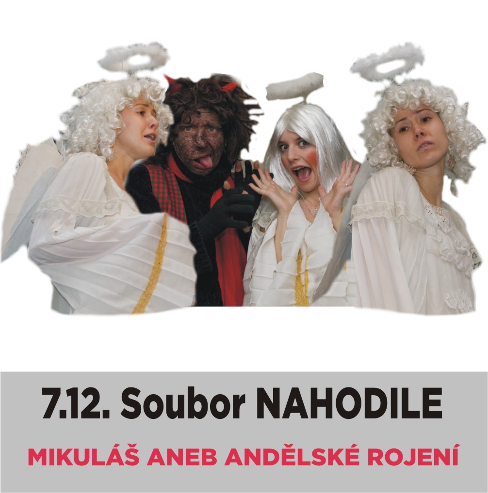 Děti, vezměte bráchy, ségry, maminky, tatínky, babičky, dědečky a v neděli 7. 12. 2014 v 10:00 hodin přijďte do Akordu, kde spolu s Mikulášem rozuzlíte téměř detektivní, veselou, zápletku. V Pohádkově se totiž udála pěkná šlamastyka! Blíží se den, kdy Mikuláš obdarovává hodná pacholátka svou nadílkou a zčista jasna se vyrojí více andělů, než je zapotřebí. Jsou to praví andělé nebo to jsou dárebáci čertíci převlečení za anděly? Co si teď Mikuláš počne? Dopadne to dobře?
