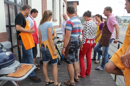 Grilujeme venku na naší terase Holešovického studia. V případě nepříznivého počasí se samozřejmě můžeme přesunout do prostor studia.