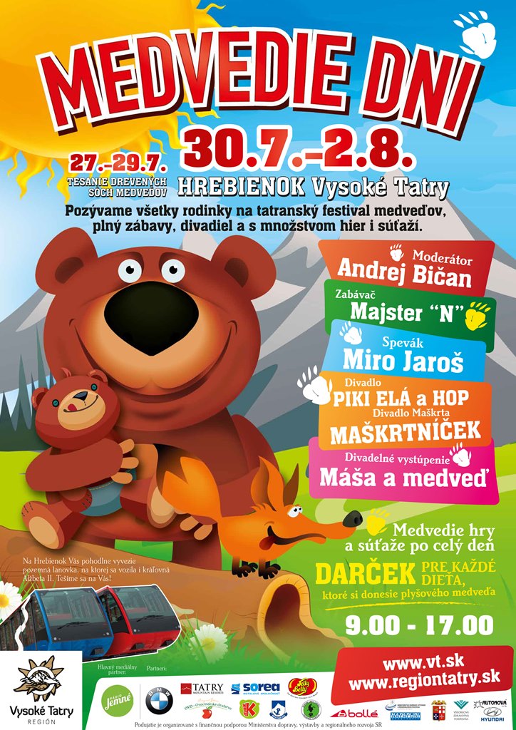 8. ročník obľúbeného tatranského medvedieho festivalu na Hrebienku plného medvedej atmosféry pre deti i dospelých. Tentokrát trvá až celých 7 dní!
