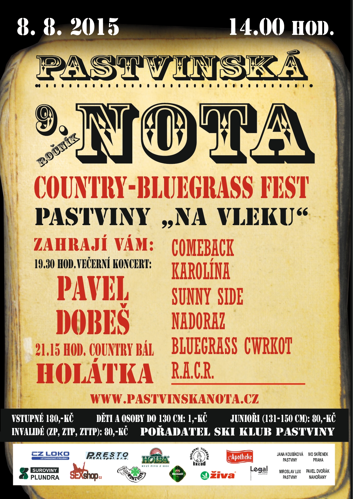 Pěkné letní počasí a vzdutá hladina Pastvinské přehrady byly vždy výzvou k návštěvě Pastvin. Letošní IX.ročník Pastvinské noty bude 8.8.2015 a nabídne návštěvníkům mix bluegrassové, country a folkové muziky. Přijedou k nám rozeznít svá banja, kytary, mandolíny, housle a kontrabasy skvělé kapely.CWRKOT, SUNNY SIEDE, COMEBACK, hrají tradiční bluegrass, lehce staromódní a pohodový z dob kdy slavný Bill Monroe na své banjo dobyl celou západní polokouli.Přidají se k nim další a večer bude patřit Pavlovi Dobešovi . Pro zpestření žánru vystoupí Hradecká kapela NADORAZ.Tak si IX.ročník přijďte s námi užít.