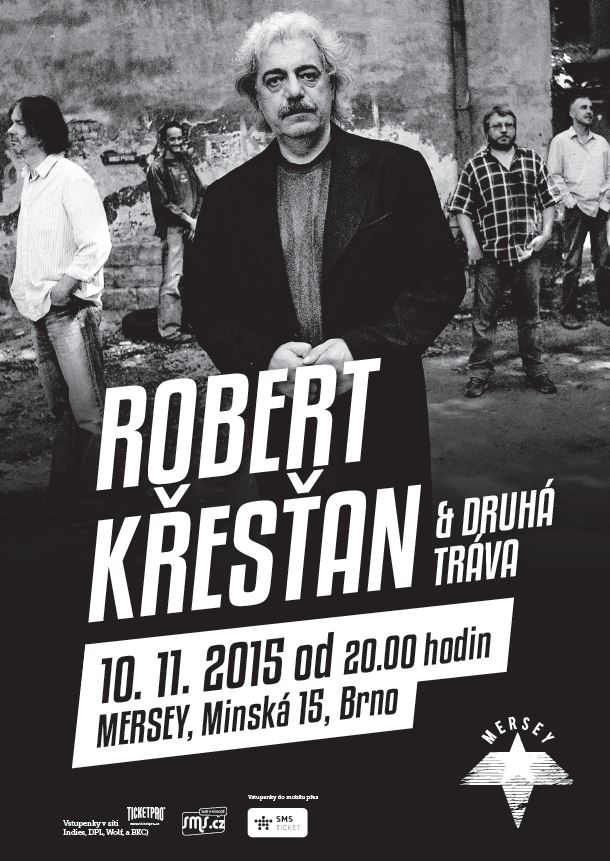 V úterý 10. listopadu 2015 vás zveme na koncert Roberta Křesťana a skupiny Druhá tráva. V klubu Mersey hráli přesně před dvěma lety, kdy byl koncert spojený s představením alba Pojďme se napít. Začátek aktuálního koncertu je plánován na 20:00.