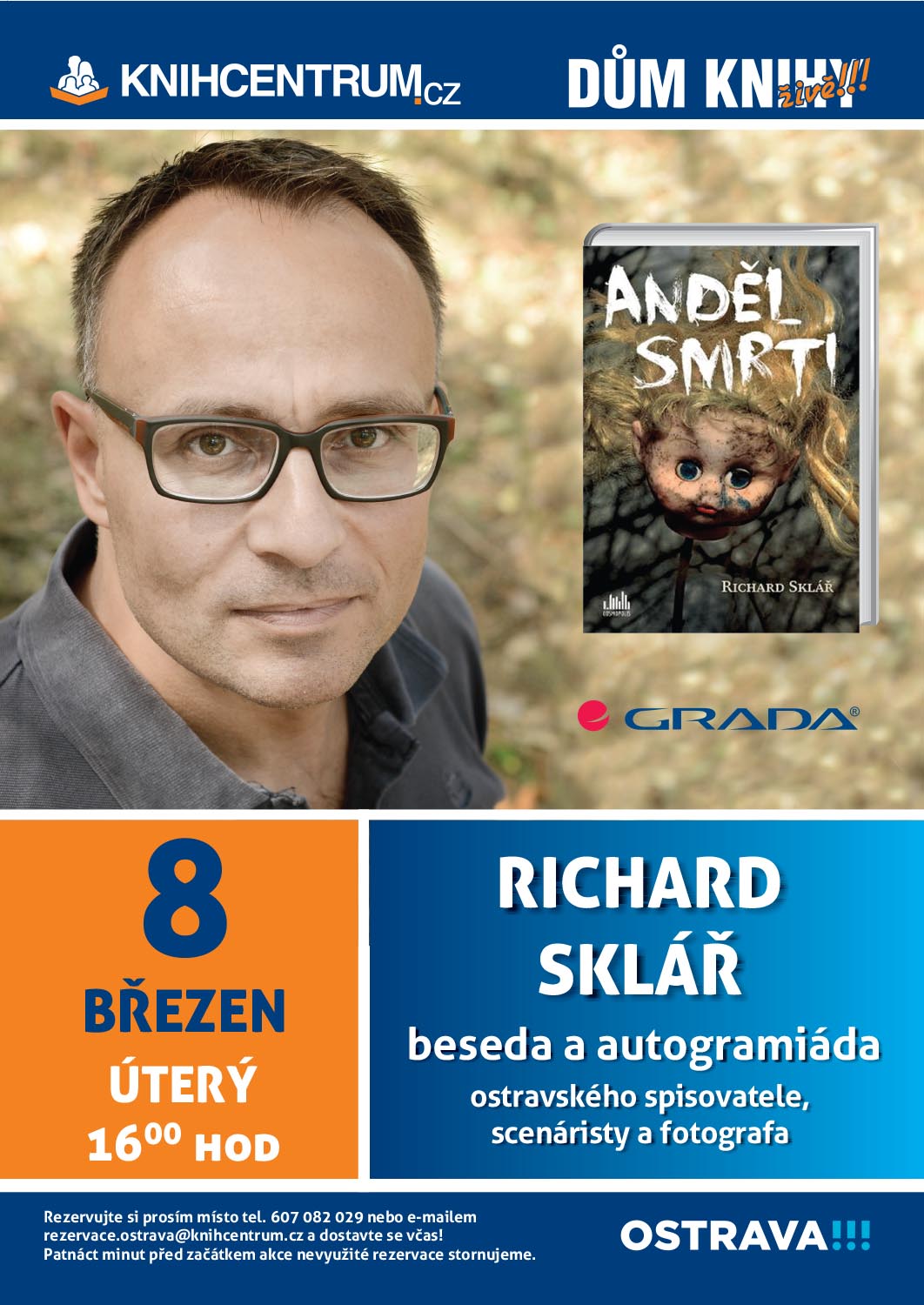 Pokračování jeho samostatného díla Vila na Sadové, ve kterém hlavní hrdinka Bo znovu rozjíždí šokující pátrání plné napětí a nečekaných zvratů. Stejně jako předchozí kniha nabízí i Anděl smrti vhled do skrytých zákoutí Ostravy, o kterých ví jen málokdo. V temném stínu se dějí věci, ze kterých mrazí. Kdo chce spisovatele Richarda Skláře potkat osobně, má jedinečnou příležitost v úterý 8. března.