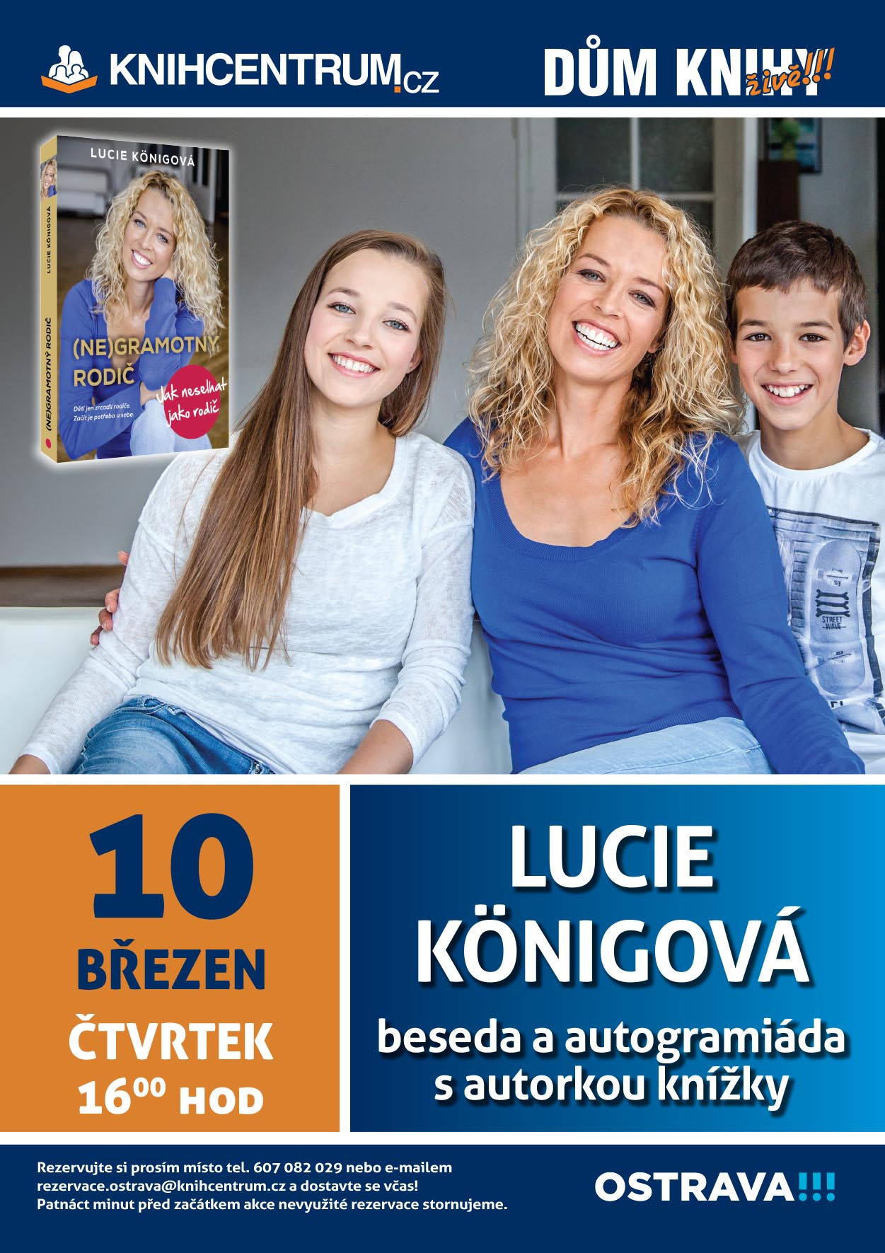 Rezervujte si místo e-mailem rezervace.ostrava@knihcentrum.cz nebo telefonicky 607 082 029. Upozornění – 15 minut před začátkem akce rezervace propadají, dostavte se prosím včas!