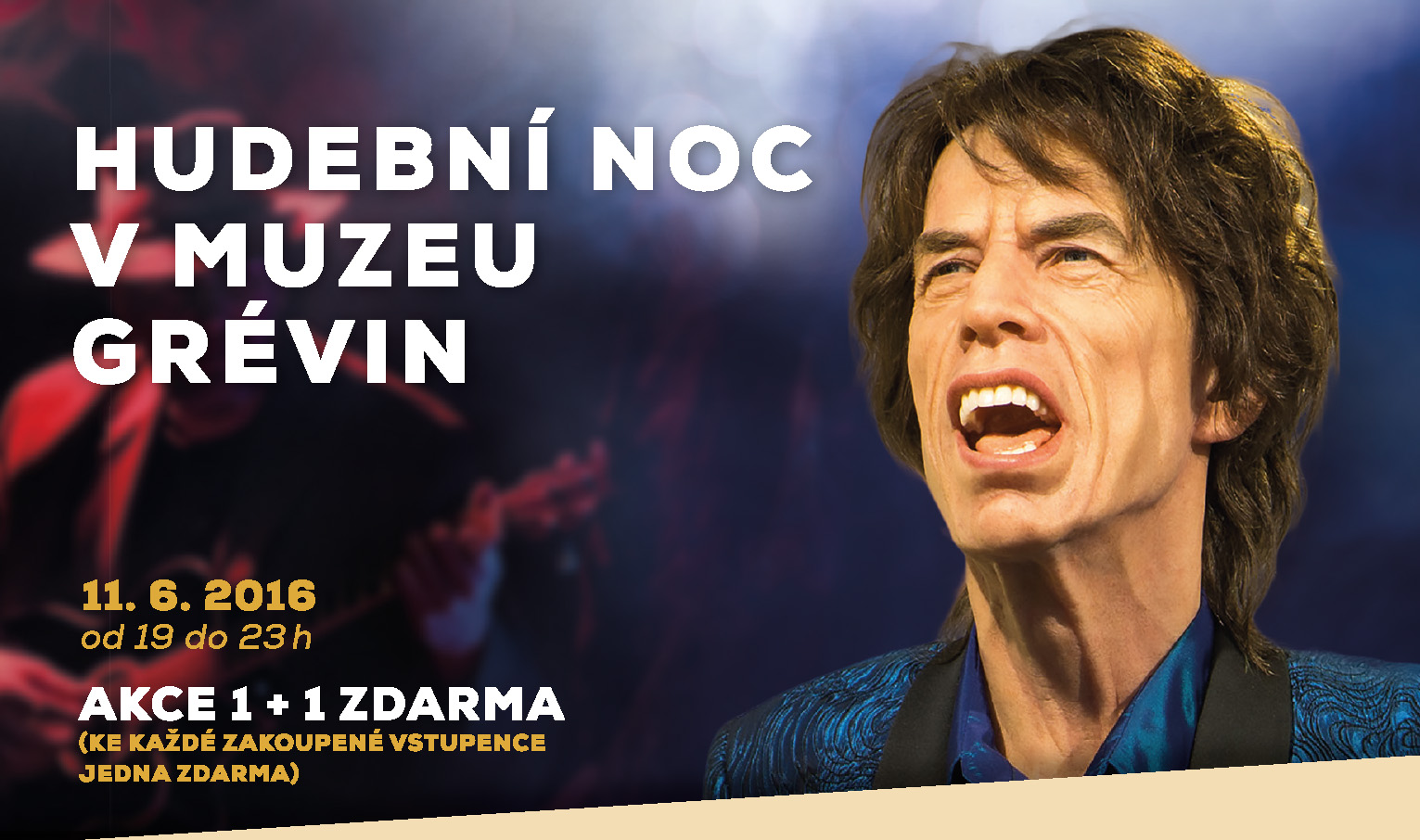 Těšit se můžete nejen na domácí stálice hudebního nebe, ale i na miláčky světových pódií Elvise Presleyho, Michaela Jacksona a další. Muzejní program ve vstupní hale bude probíhat až do půlnoci.