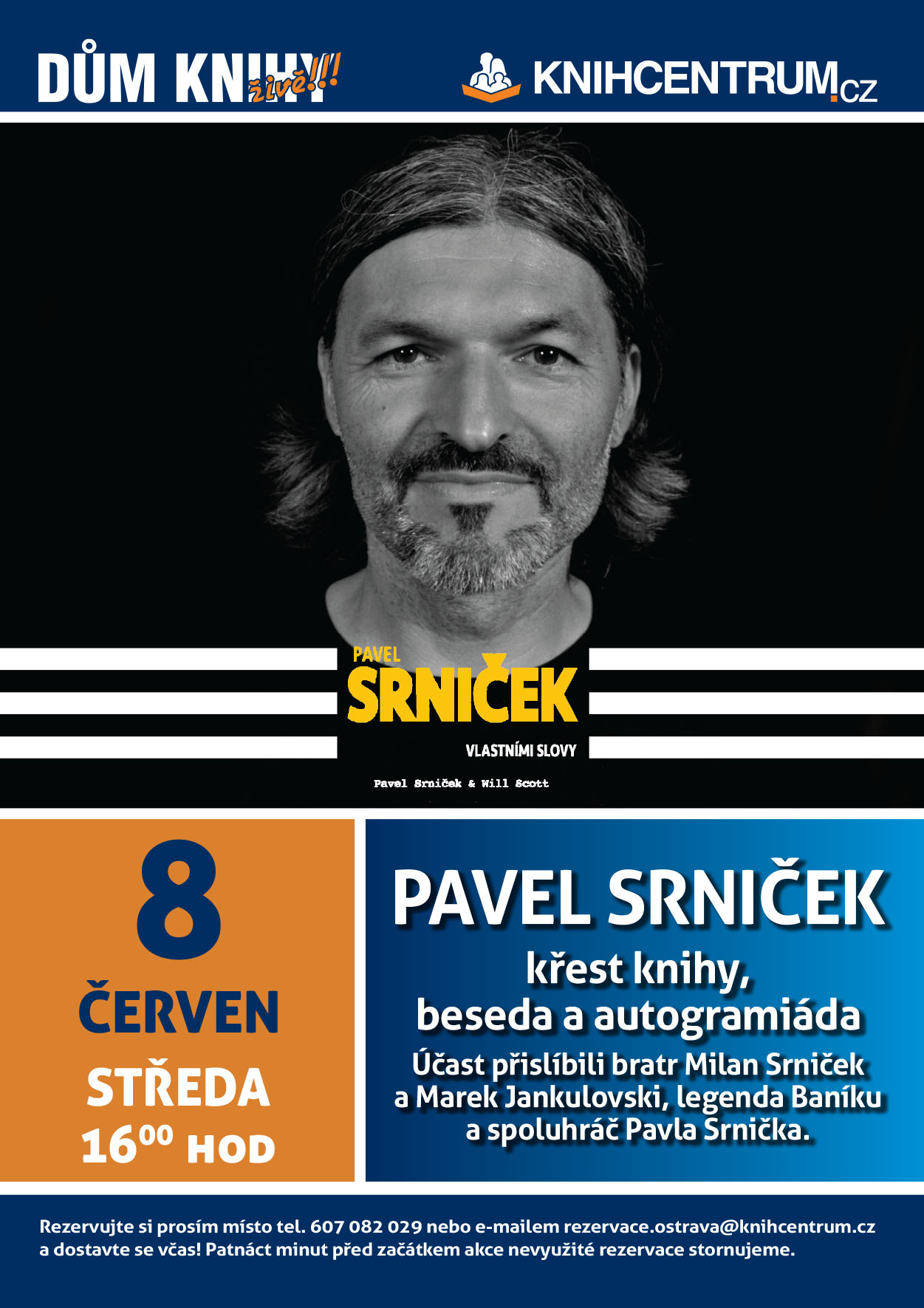 Když se řekne Pavel Srniček, vybavíme se vám spojení jako nejlepší fotbalový brankář, dříč a borec. Pavel Srniček - Vlastními slovy je biografie, kterou stačil vydat před svým náhlým odchodem. Křest knihy, beseda a autogramiáda se uskuteční ve středu 8. června v 16.00. Účast přislíbili bratr Milan Srniček a Marek Jankulovski, legenda Baníku a spoluhráč Pavla Srnička.