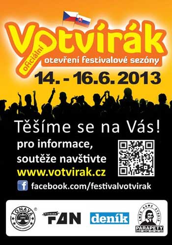 Svátek české a slovenské populární hudby a jejích skvělých fanoušků – Festival Votvírák – se uskuteční jako každoročně v měsíci červnu, tentokrát od 14. do 16.6. 2013.